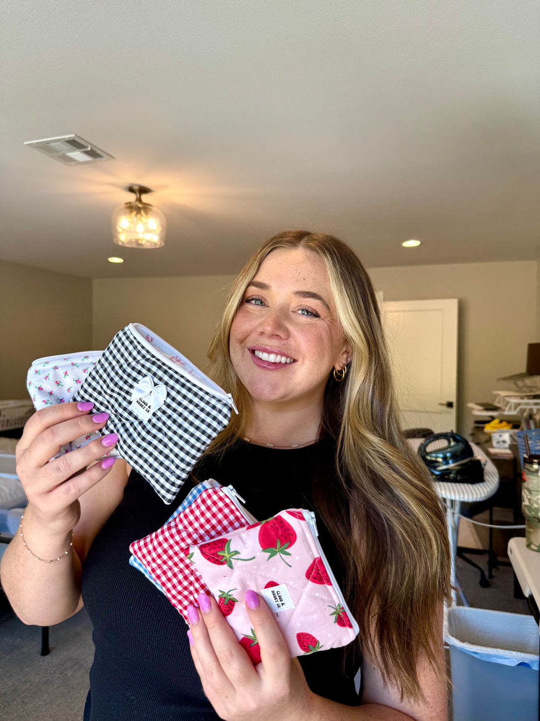 I'm the maker behind Cloud & Honey Co. I started this business in July 2025, and every single piece you see is handmade and hand-quilted by me on my sewing machine.