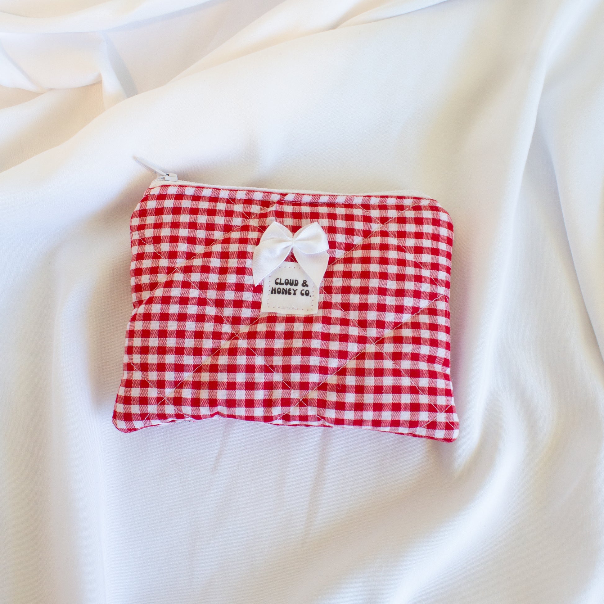 This adorable red gingham and cherries zipper bag brings the fun, fresh energy! The cute combo of red gingham and sweet cherries makes this little pouch irresistibly happy 🩵